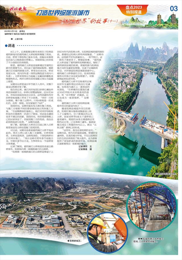 “阳朔第一座横跨漓江的公路桥是修建于上世纪70年代的阳朔大桥,从阳朔县城到福利镇的话,都要经过阳朔大桥和两座隧道。”吴顺舟说,这段路平时车流量很大,一到节假日,这一路车子就更多了,拥堵是常事。“福利漓江大桥连接了福利镇和阳朔新城区,缩短了福利镇到县城的距离,使福利镇与阳朔县城之间的交通更加便捷,完善了区域路网布局。兴坪镇是阳朔县域旅游副中心,福利漓江大桥修建好之后,往来阳朔县城和兴坪镇之间也更加便捷了,对旅游将起到促进作用。”