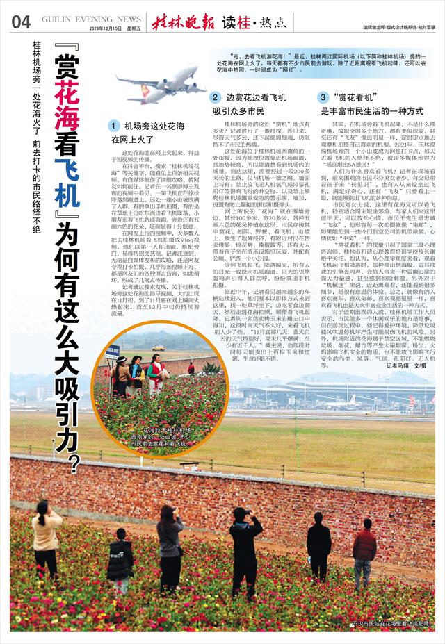 最近,桂林两江国际机场旁的一处花海在网上火了,每天都有不少市民前去游玩。这里不仅能近距离观看飞机起降,还能在花海中拍照,一时间成为“网红打卡地”。