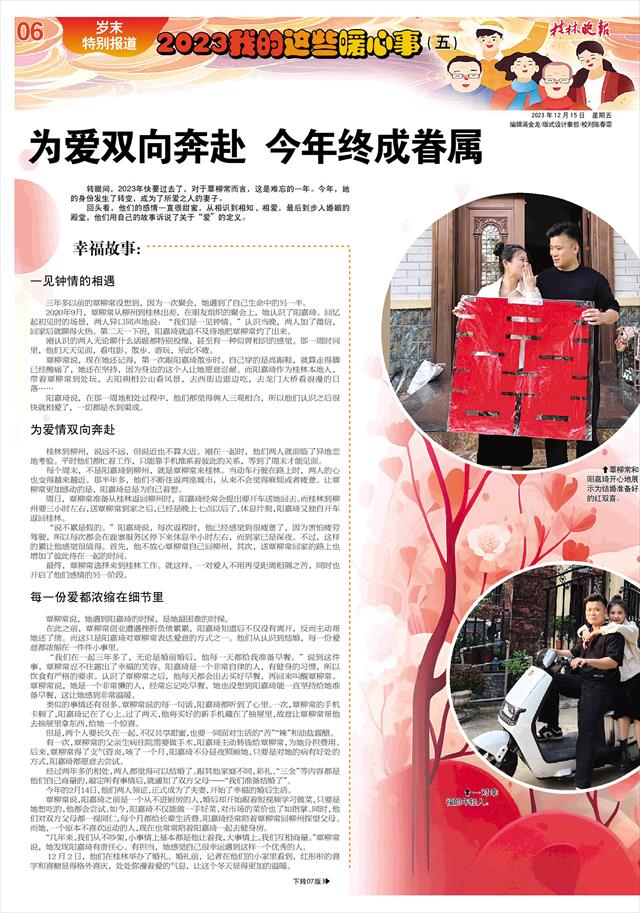 转眼间,2023年快要过去了,对于覃柳常而言,这是难忘的一年。今年,她的身份发生了转变,成为了所爱之人的妻子。