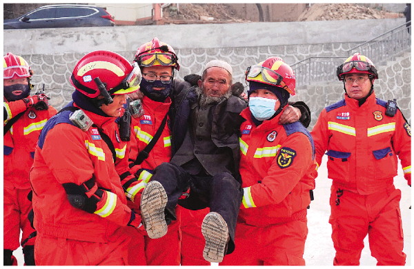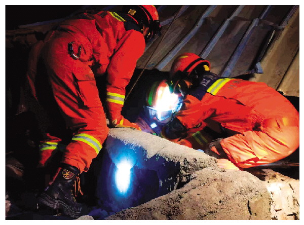 12月19日,在甘肃省临夏回族自治州积石山保安族东乡族撒拉族自治县大河家镇大河村,消防人员开展救援。新华社记者马希平 摄