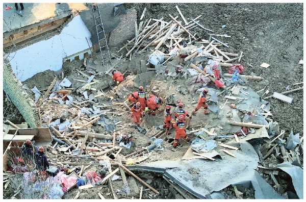 在现场焦急等待的金田村村民杨忠孝说,堂弟家的房子被泥沙掩埋,土层比较厚,也找不到准确位置。“目测被掩埋的地方应该还有3户人家。”