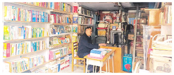 这家位于小巷子里的书店名叫观音阁书屋。之所以以社区的名字命名,是因为主要服务社区居民,尤其是青少年儿童。书屋不大,大约只有20平米,内部布置也很简单,除了“大门”,三面都是书架,上面摆满了各种适合青少年的书籍,有杂志、名著、漫画等。