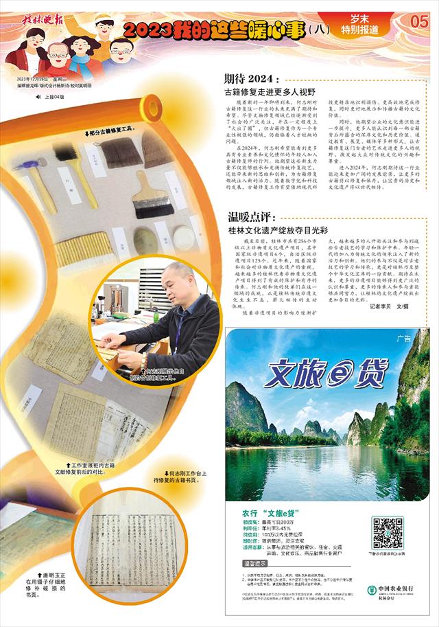 进入2024年,何志刚期待这一行业能迎来更加广阔的发展前景,让更多的古籍得以修复和保存,让宝贵的历史和文化遗产得以世代相传。