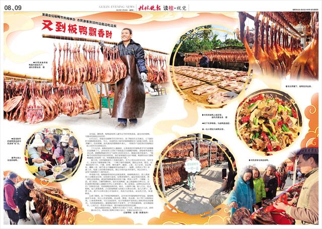 板鸭是桂林的传统美食,临桂会仙旧村的板鸭尤为出名。据介绍,旧村板鸭制作工艺至今已有200多年历史。