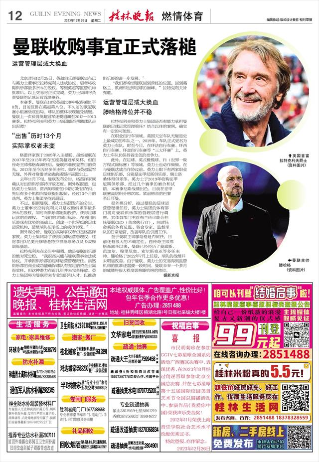 本赛季,曼联在18轮英超比赛中取得9胜1平8负,目前仅排在英超第八位,不久前的欧冠联赛小组赛垫底出局,球队的整体表现饱受质疑。曼联上一次获得英超冠军还要追溯至2012—2013赛季,拉特克利夫和英力士集团能否帮助球队走出泥潭?