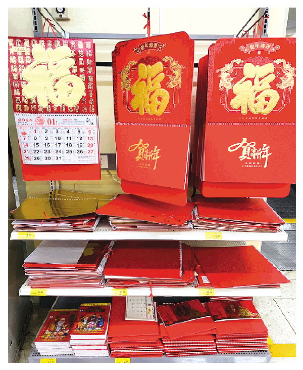 走进滨江路图书市场,记者观察发现,今年售卖挂历的店家相对往年少了很多。过去,每到年底,市场内多数铺面都会挂出各式各样的挂历供顾客挑选,如今却仅剩一家书店在售卖,且设计基本以福字为主。