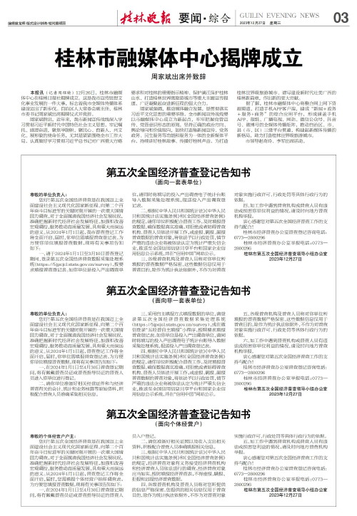 桂林市经济普查办公室普查登记咨询电话:0773—2800296