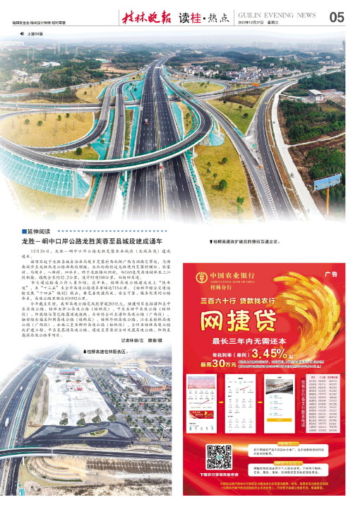 12月26日,龙胜-峒中口岸公路龙胜芙蓉至县城段(龙城高速)建成通车。