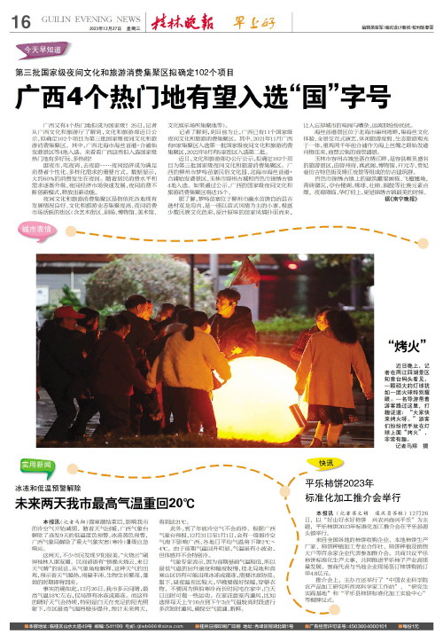 近日,文化和旅游部办公厅公示,拟确定102个项目为第三批国家级夜间文化和旅游消费集聚区。广西的柳州市梦呜苗寨民俗文化园、北海市海丝首港·合浦始发港景区、玉林市容州古城和百色市锦绣古镇4地入选。如果通过公示,广西的国家级夜间文化和旅游消费集聚区将达15个。