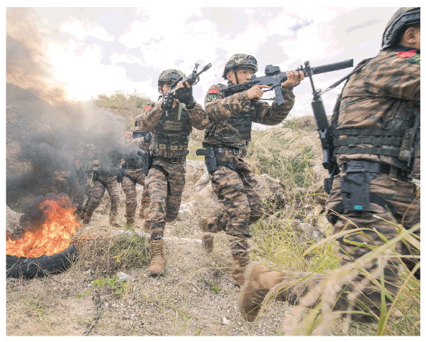 武警广西总队贺州支队组织特战队员开展实战化综合演练(1月2日摄)。
