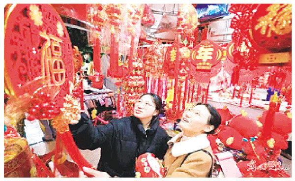 近日,安徽省淮北市节日饰品市场上,人们忙着选购商品。(图源:光明网)