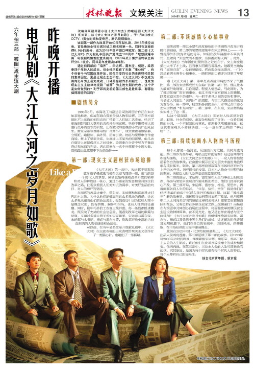改编自阿耐原著小说《大江东去》的电视剧《大江大河》系列第三部《大江大河之岁月如歌》,于1月8日晚在CCTV-1黄金时间和爱奇艺、腾讯视频播出。