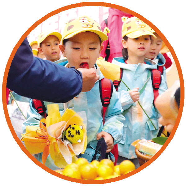 为了欢迎可爱的“小东北虎”,到达厅摆放了砂糖橘、脐橙、草莓、甘蔗等桂林特色水果和软糯的桂花糕、红薯干等特色小吃,备受孩子们的喜爱。