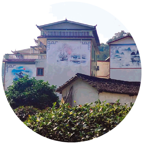 ↑淡塘村村民房屋白墙上的彩绘,描绘着新农村的变化。 记者苏文娟 摄