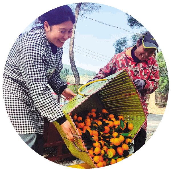 ←村民们早起剪下的砂糖橘,送到村口售卖。 记者苏文娟 摄