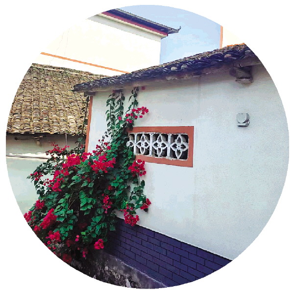 ↓淡塘村一角,干净的院落,也有繁花的浪漫。 记者苏文娟 摄