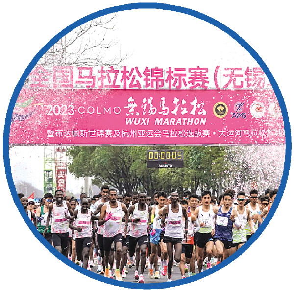 ↓2023年3月19日,2023无锡马拉松参赛选手从起点出发。 新华社发