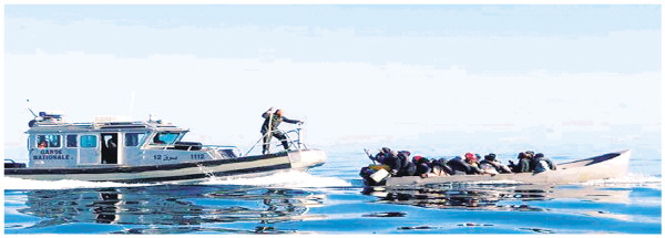 突尼斯海岸警卫队人员试图阻止准备穿越地中海前往意大利的移民。
