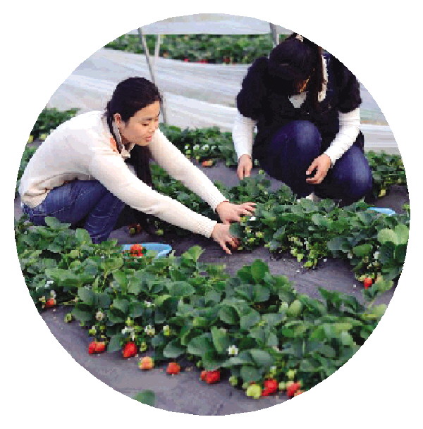 →市民在马头山村采摘草莓。