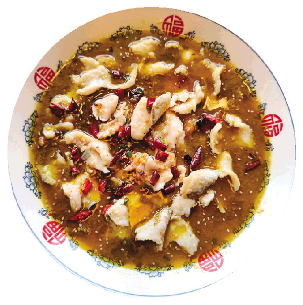 酸菜鱼汤颇有海的感觉,鱼切片后能够隐隐约约看到鳞片。
