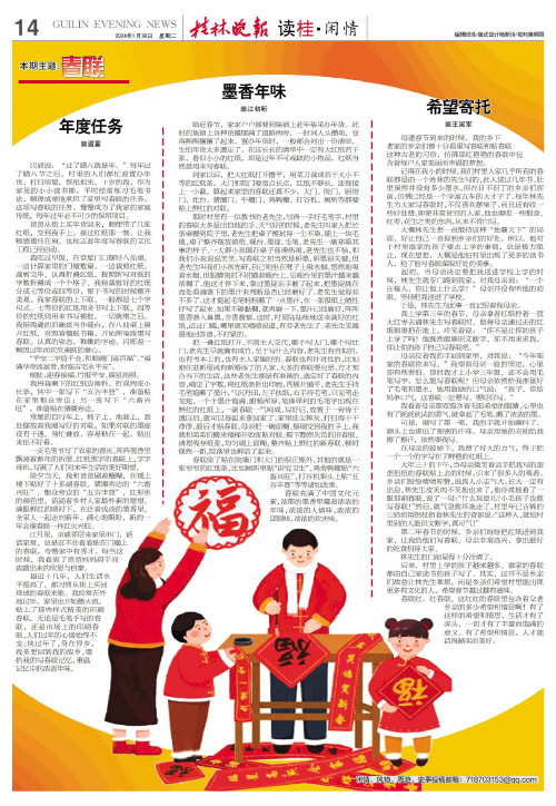 母亲拉着我的手回到家里,对我说:“今年咱家的春联你来写。”我望着母亲一脸的坚定,心里却有些害怕。那时我才上小学三年级,还不会用毛笔写字,怎么能写春联呢?但母亲依然给我准备好了毛笔和墨水,她用鼓励的口气说:“孩子,你给妈争口气,这春联一定要写,要好好写。”