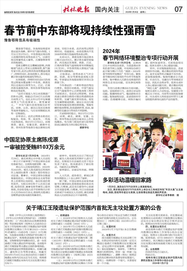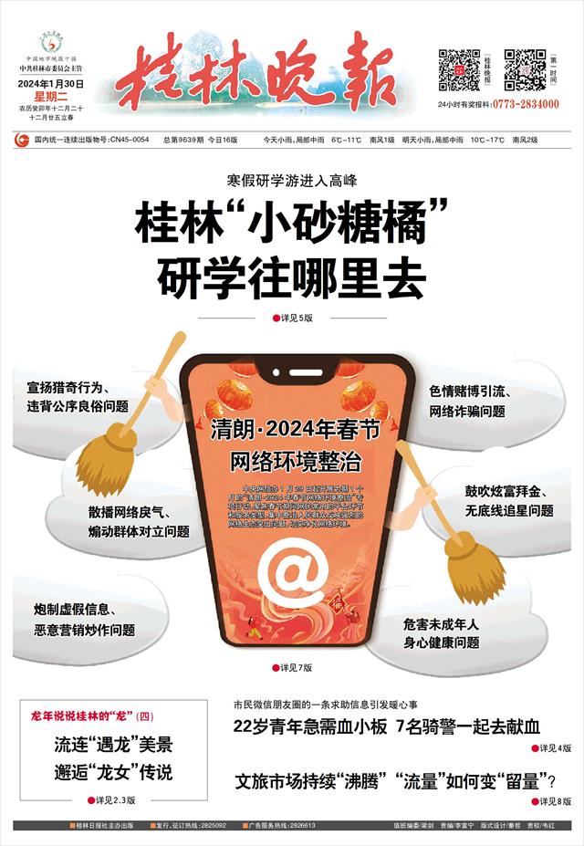 中央网信办1月29日起开展为期1个月的“清朗·2024年春节网络环境整治”专项行动,聚焦春节期间网民常用的平台环节和服务类型,集中整治人民群众反映强烈的网络生态突出问题,切实净化网络环境。