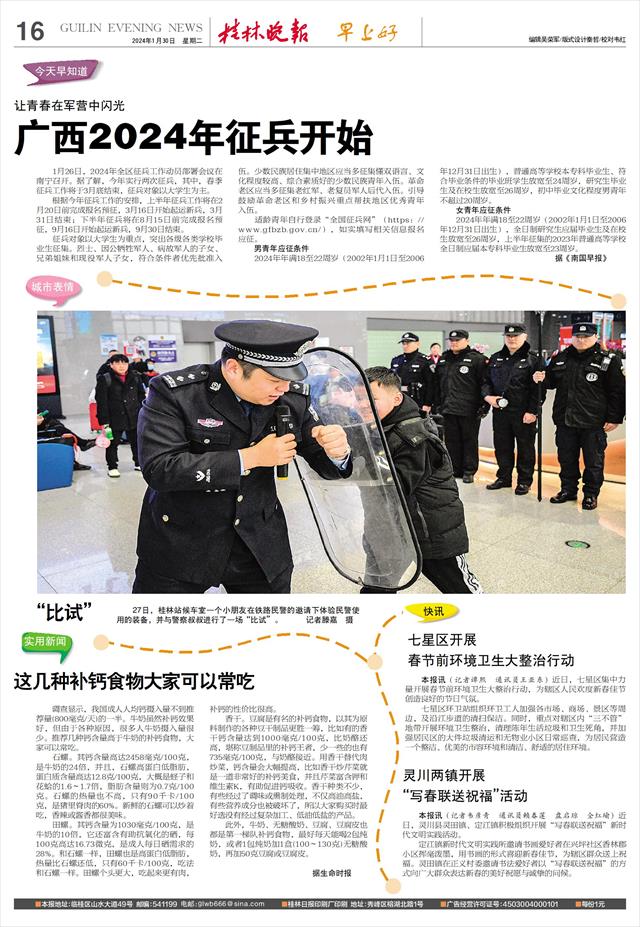 让青春在军营中闪光 广西2024年征兵开始   1月26日,2024年全区征兵工作动员部署会议在南宁召开。据了解,今年实行两次征兵,其中,春季征兵工作将于3月底结束,征兵对象以大学生为主。