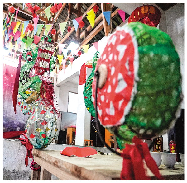 记者与几位村民交谈后了解到,村民们非常喜欢匏颈龙舞,不管是逢年过节还是喜宴寿宴,想要场面热闹起来一定离不开它。而且,村子里使用的龙头、龙宝都是村民们自己手工制作的。扎好的龙头涂上鲜艳的颜色,凑近龙宝还能看到球体上画满了精细的图案装饰。