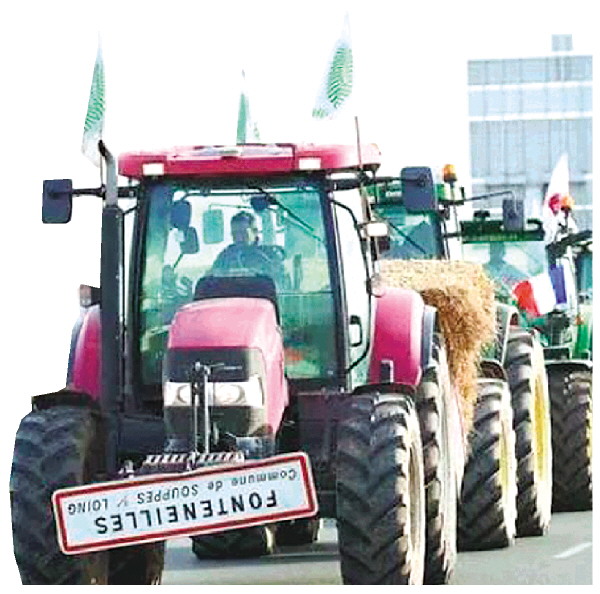 连日来,大批对生产境遇不满的法国农民向政府抗议。抗议的农民1月29日驾驶500台拖拉机“占领”进出巴黎的高速公路,声称要“无限期围困”巴黎。