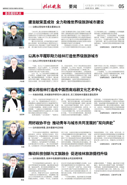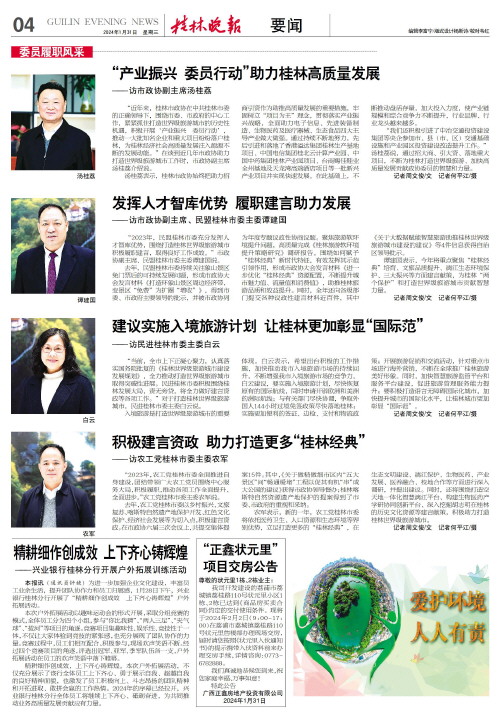 “产业振兴 委员行动”助力桂林高质量发展 ——访市政协副主席汤桂荔   “近年来,桂林市政协在中共桂林市委的正确领导下,围绕市委、市政府的中心工作,紧紧抓住打造世界级旅游城市的历史性机遇,积极开展‘产业振兴 委员行动’,推动一大批知名企业和重大项目纷纷落户桂林,为桂林经济社会高质量发展注入源源不断的发展动能。”在谈到近几年市政协助力打造世界级旅游城市工作时,市政协副主席汤桂荔介绍说。