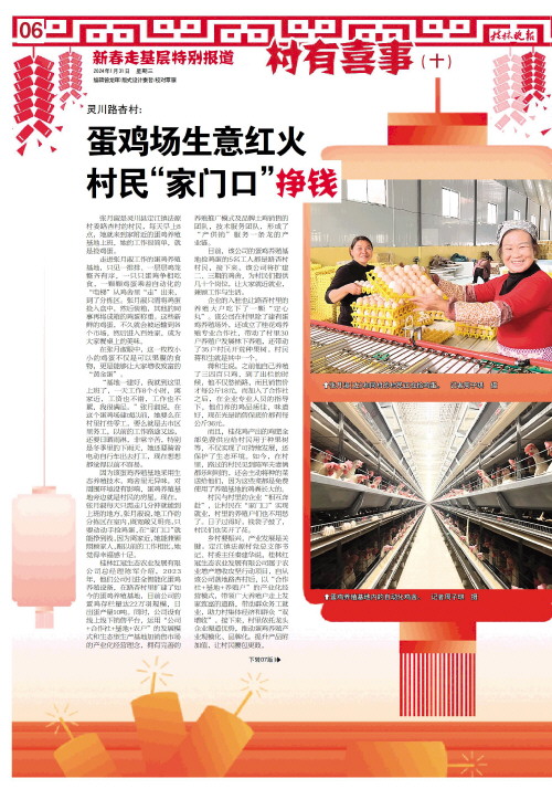 目前,该公司的蛋鸡养殖基地捡鸡蛋的5名工人都是路杏村村民,接下来,该公司将扩建二、三期的鸡舍,为村民们提供几十个岗位,让大家就近就业,兼顾工作与生活。