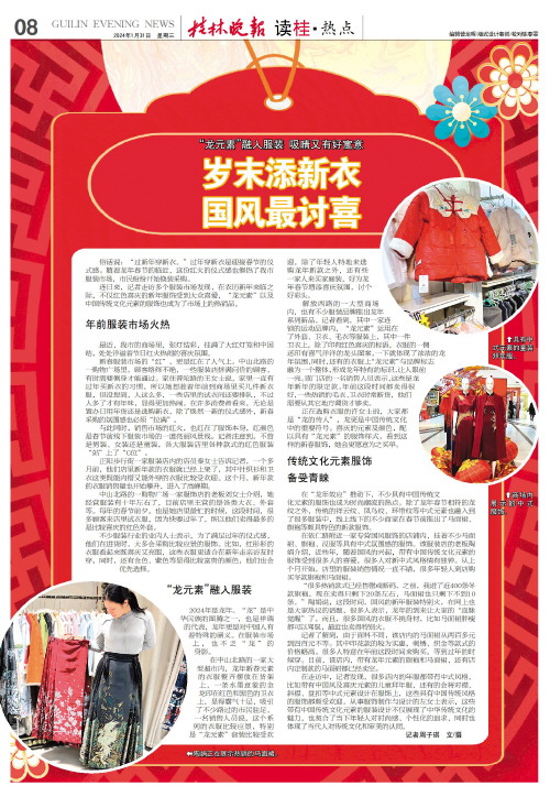 国风最讨喜   俗话说:“过新年穿新衣。”过年穿新衣是迎接春节的仪式感。随着龙年春节的临近,这份红火的仪式感也催热了我市服装市场,市民纷纷开始换装采购。