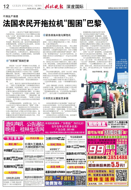 法国总理阿塔尔日前承诺要“迅速行动”以回应农民的愤怒。在1月29日接受法国电视二台采访时,法国农业部长费斯诺表态称,“将在48小时内提出一些新的措施,作为对总理上周五宣布措施的补充”,以“证明政府有意愿走出危机,并提供具体的回应”。