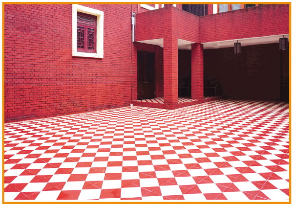 广西省立艺术馆外观以红色为主,风格鲜明。