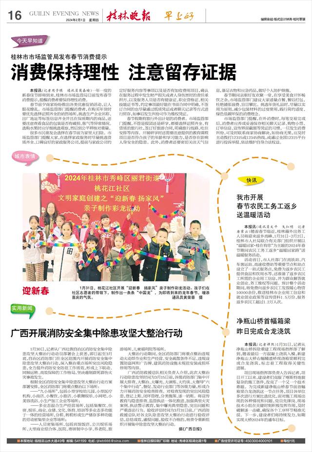 桂林市市场监管局发布春节消费提示 消费保持理性 注意留存证据   本报讯(记者周子琪 通讯员莫嘉瑜)一年一度的新春佳节即将到来,桂林市市场监管局日前发布春节消费提示,提醒消费者要保持理性消费。