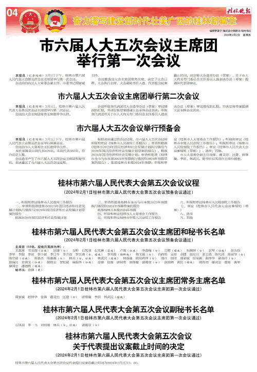 桂林市第六届人民代表大会第五次会议议程 (2024年2月1日桂林市第六届人民代表大会第五次会议预备会议通过)   一、听取和审议桂林市人民政府工作报告