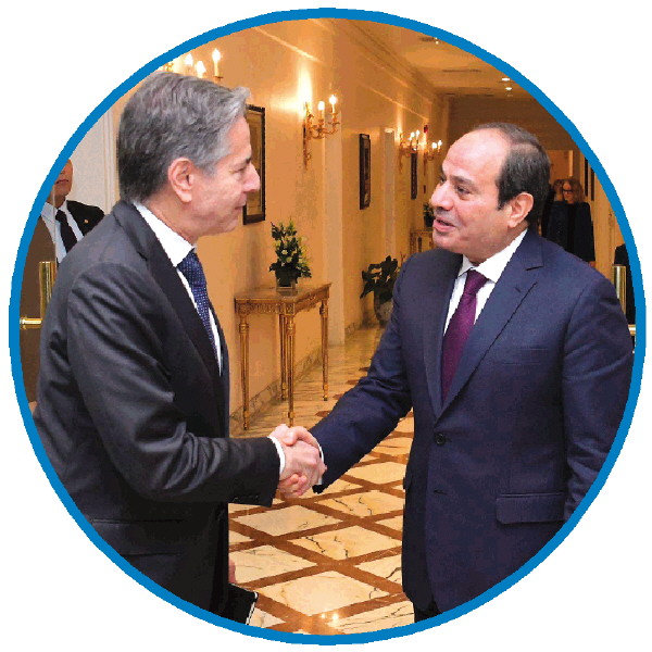 6日,埃及总统塞西(右)在开罗会见到访的美国国务卿布林肯。新华社发
