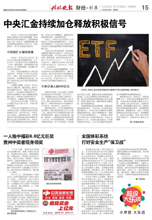 2月6日,中央汇金公司公告,充分认可当前A股市场配置价值,已于近日扩大交易型开放式指数基金(ETF)增持范围,并将持续加大增持力度、扩大增持规模,坚决维护资本市场平稳运行。