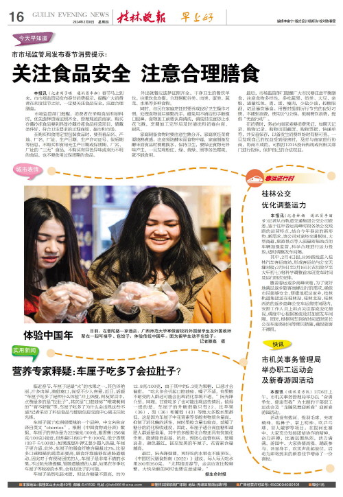 市市场监管局发布春节消费提示: 关注食品安全 注意合理膳食   本报讯(记者周子琪 通讯员李湘)春节马上到来,市市场监管局发布春节消费提示,提醒广大消费者在欢度佳节之际,一定要关注食品安全,注意合理膳食。