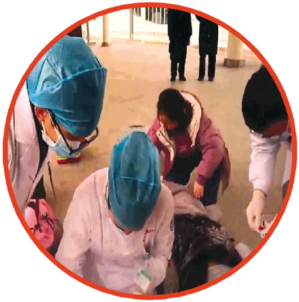 医护人员到达桂林西站接力抢救患病旅客(视频截图)。