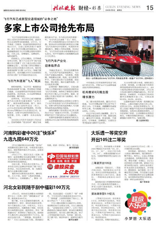 从二级市场表现来看,截至2月7日收盘,飞行汽车概念股今年以来平均下跌21.14%。万丰奥威、森麒麟和光威复材均上涨,年内涨幅分别为15.18%、4.89%、2.14%。