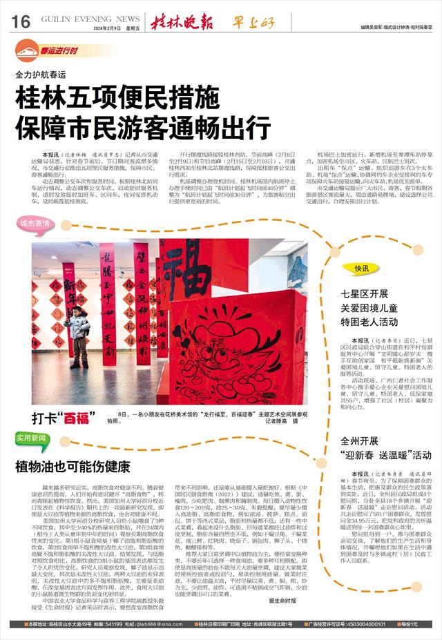 记者还了解到,航班进入平飞阶段后,桂林航空还在机上举办了“龙腾虎跃迎新年,南北联欢一家亲”主题客舱活动,并为航班上所有旅客准备了小礼物,让旅客们在万米高空体验到了浓浓的年味。