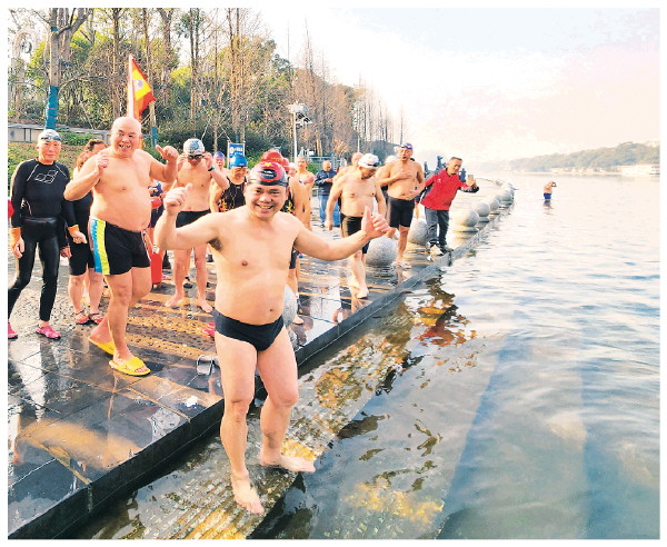 大年初一,天气晴好。市冬泳协会在解放桥下举行冬泳漓江下水仪式,近百名冬泳爱好者来到漓江边,以冬泳人特有的方式庆祝节日。
