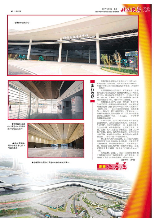 日前,记者来到位于三元路以西的桂林国际会展中心。站在会展中心广场,最先映入眼帘的是横向呈弧形展开的展览中心,其神似蜿蜒曲折的漓江。
