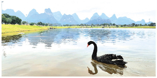 桂海晴岚景区相关负责人介绍,景区内湖泊水源均为地下活泉水,一年四季水量都比较稳定,不会干涸。记者观察到,天鹅湖中已有6只黑天鹅“安家”。这些天鹅不太认生,运气好的话能够近距离欣赏到它们在湖中游弋的优美身姿。