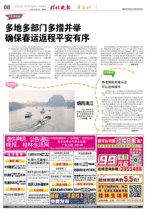 今年春节假期,桂林呈现出一派喜庆、热闹、祥和的景象,市民开心外出畅玩,各地游客纷至沓来,街头巷尾、景区景点游人如织。我市提前准备、及早谋划,假期里推出一系列旅游产品,用细致周到的服务,为广大市民和八方来客营造了安全、舒心、放心的出游环境。