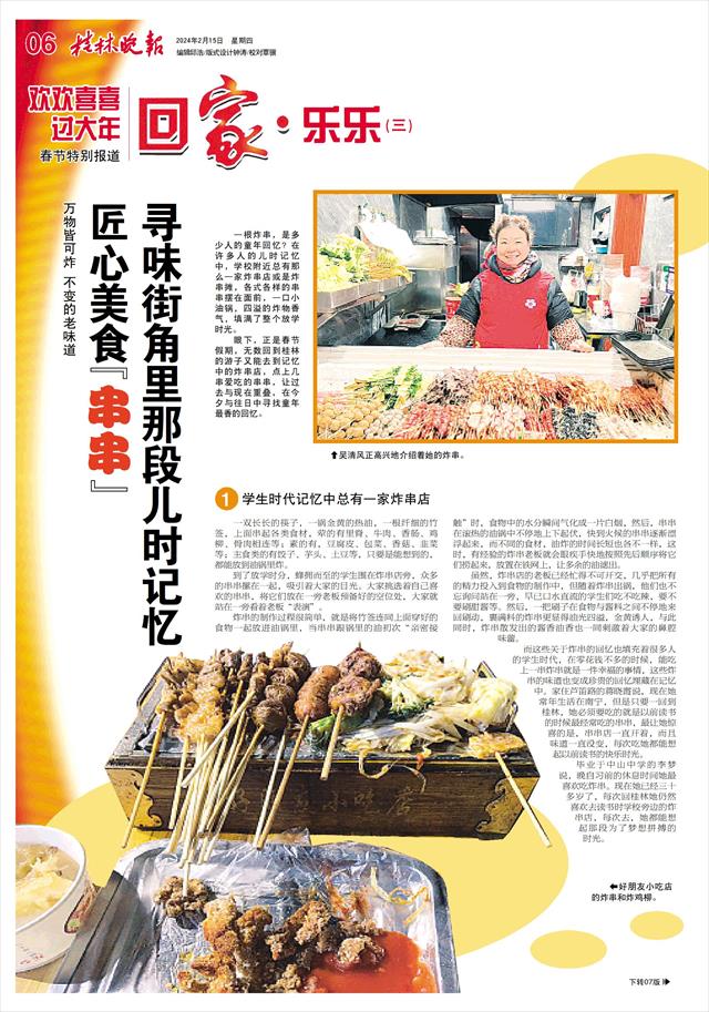 眼下,正是春节假期,无数回到桂林的游子又能去到记忆中的炸串店,点上几串爱吃的串串,让过去与现在重叠,在今夕与往日中寻找童年最香的回忆。