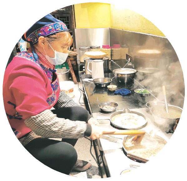 制作油茶有很多流程,“捶打是油茶的灵魂,捶打出来的油茶更香。”桂林市餐饮烹饪协会副会长罗书铭介绍,油茶出锅后,一般搭配炒米、麻旦果、香菜、香葱和花生米等一起食用。如今,越来越多的人爱上了打油茶。