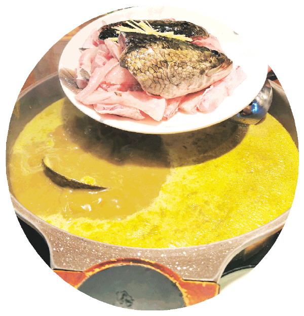 在不少油茶店里,油茶鱼备受欢迎,最常见的就是斑鱼油茶火锅。斑鱼刺少,肉质紧实鲜美。鲜活的斑鱼,在师傅的精湛技艺之下,剔出来的鱼片晶莹剔透。起锅时,先放入鱼头熬煮,等汤锅沸腾,再把切好的鱼片放入沸腾的火锅中3至6秒即可出锅,鱼片入口嫩滑。烫过鱼片的油茶口感更鲜甜,少了油茶原有的苦涩,口感更佳。