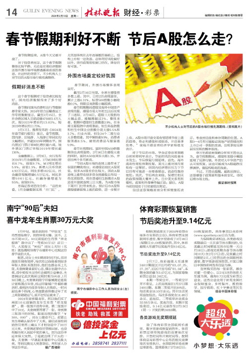 根据《财政部关于2024年彩票市场休市安排的公告》,体育彩票全国联网乐透型、数字型游戏于2月18日(星期日)0:00恢复销售。其中,体彩超级大乐透节后奖池升至9.14亿元。